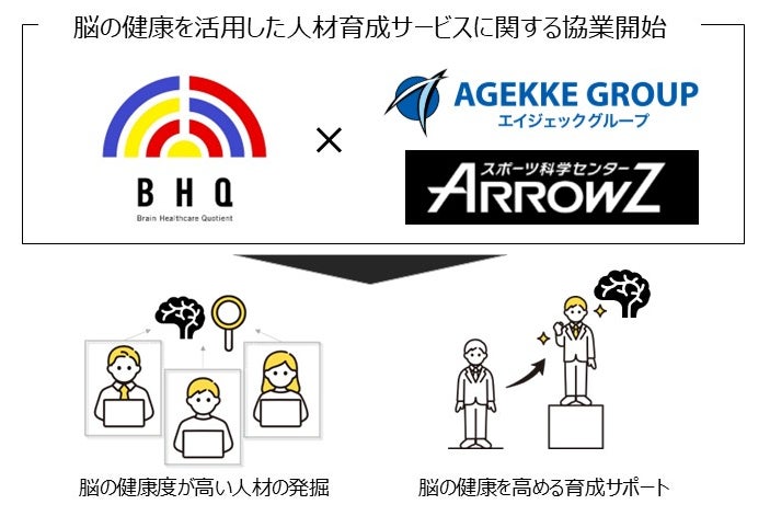BHQ株式会社(埼玉県さいたま市、代表取締役:川森 雅仁、以下 BHQ社)と株式会社エイジェック(東京都新宿区、代表取締役社長:古後昌彦、以下エイジェック)及びエイジェックグループの株式会社スポーツ科学(東京都千代田区、代表取締役社長:小池康之、以下スポーツ科学社)は、一般社団法人ブレインインパクト(京都府京都市、理事長:山川義徳、以下ブレインインパクト)監修のもと、脳の健康を活用した人材育成サービスに関する協業を開始します。仕事のパフォーマンスが高い優秀人材の発掘及びその育成を、脳の健康の観点から進めることで、即戦力の確保や業務効率の向上への貢献を目指します(図1)。