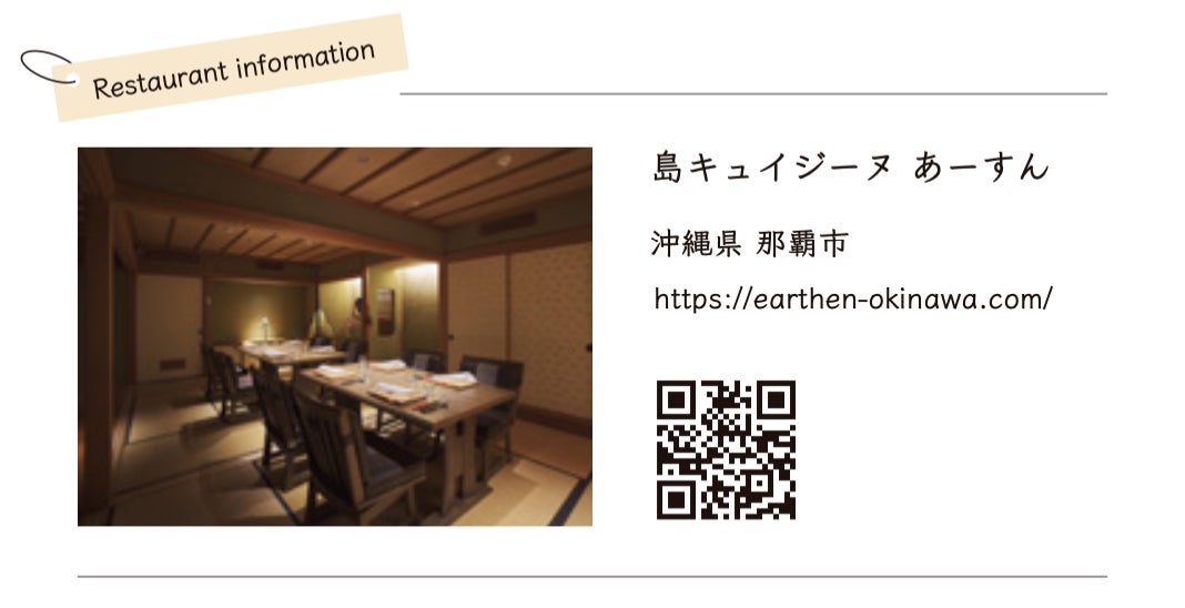 沖縄の大地と海が育む島野菜や今帰仁アグーを使って、「ぬちぐすい(命の薬)」となる 料理を届けたいと考えています。やちむんの器に、島の風景や想いを込めて、一皿一皿に 表現しています。竹富島での暮らしを経て、自然や人とのつながりの大切さに気づき、 今は那覇でその想いを料理にのせて日々励んでいます。