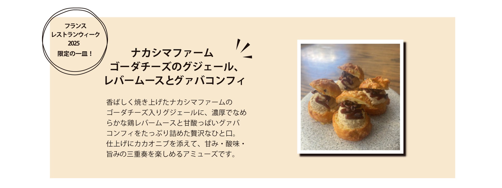 私自身、料理を通じて土地の自然や文化を伝えることを大切にしており、ナカ シマファーム様の「GRASS to CHEESE」という循環型の理念に、シェフとして 強く共感しました。料理を通じて自然や文化を伝える中で、背景にストーリー や循環の仕組みを持つ食材に魅力を感じています。ナカシマファーム様の チーズはその理想に重なり、敬意を込めて今回使用させていただきます