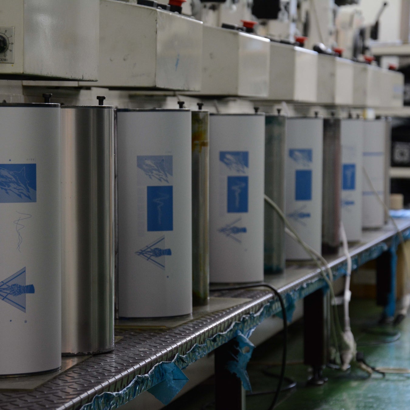 本製品の表面には32種類全てに異なる柄で部分的にザラついた手触りを演出しています。これはリオトーンという特殊なインキによる加飾を施したものです。透明PETフィルムの上にリオトーンを±1/100mm相当の公差で常に印刷しつづけ、安定して意図したデザインを成立させています。