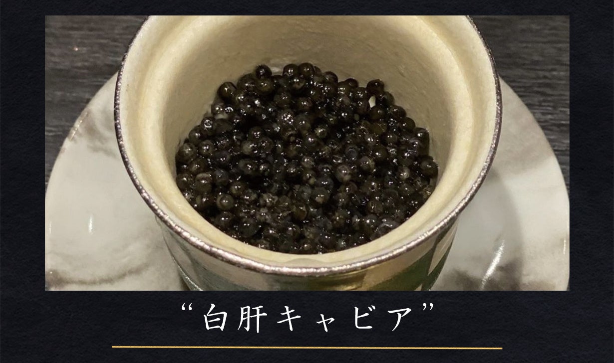 熟成させた極上の白肝を裏ごしし、塩味はキャビアで補う贅沢な一品。