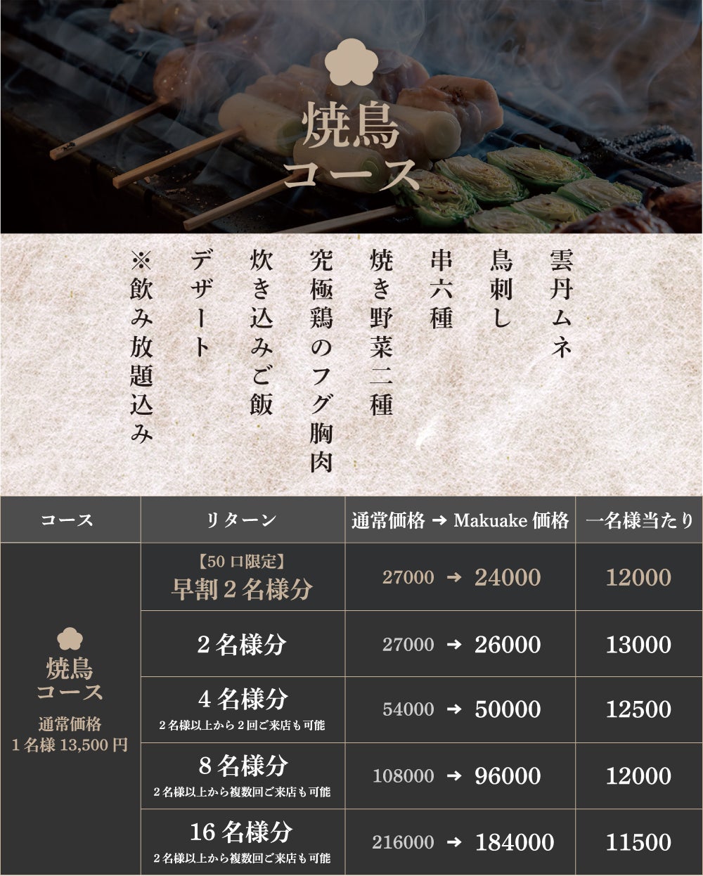 今回当プロジェクトにて応援購入してくださった方々限定にお得なコースのリターンをご用意いたしました。