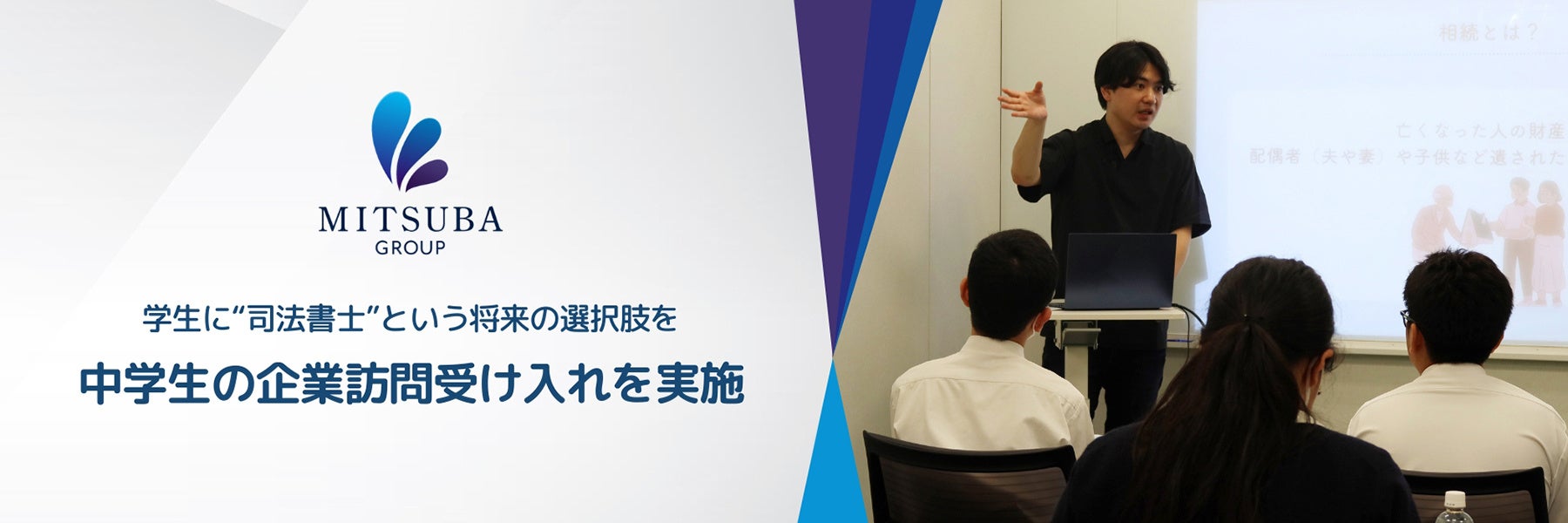 今回の企業訪問では、中学生の皆さんに司法書士の仕事の魅力や社会での役割、みつ葉グループが大切にしている考え方をお伝えしました。