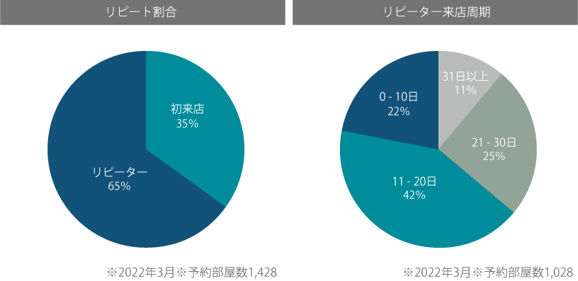 - リピート割合とリピーター来店周期