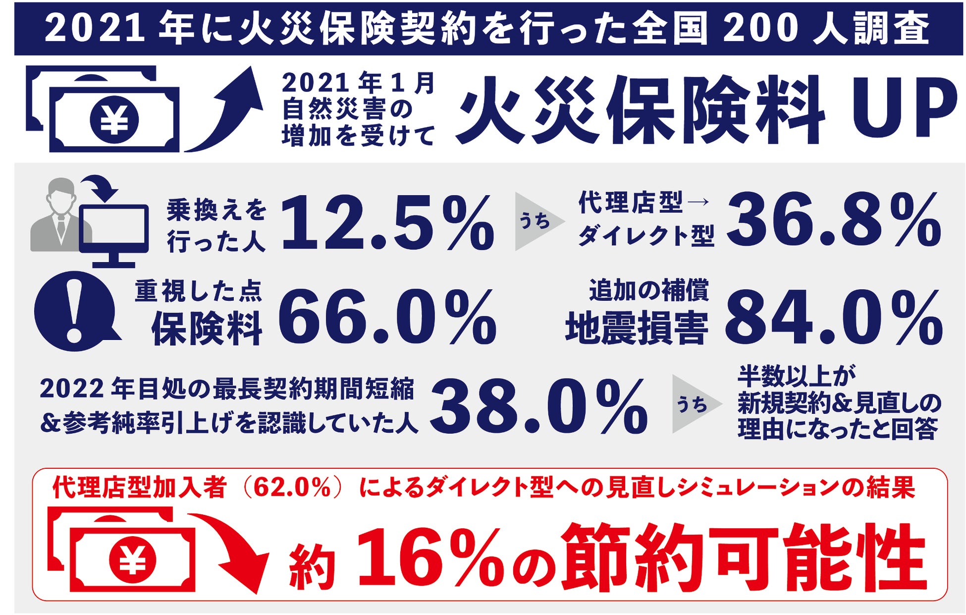 火災保険の値上げに始まった2021年、代理店型からダイレクト型への見直しが進行 代理店型加入者による見直しシミュレーションでは約16%の節約可能性