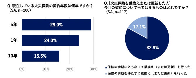 また、昨今の火災保険料の値上りの影響もあってか、今回火災保険を乗換えまたは更新した人のうち、満期を待たずに新たな火災保険に契約した人は17%以上と、約5人に1人が保険契約が終了する前に新たな契約を結んでいることがわかりました。