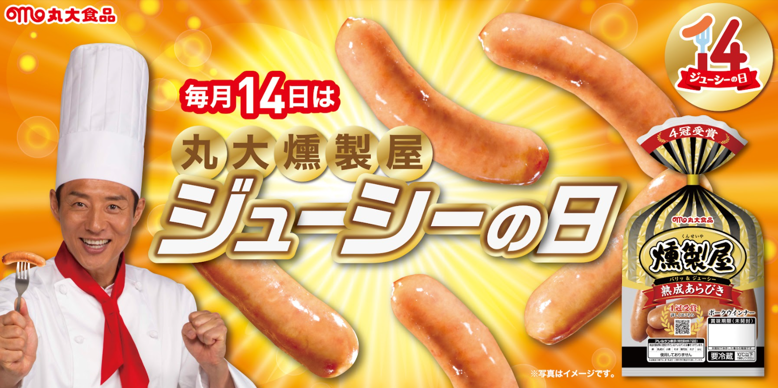 - 丸大食品が毎月14日を「丸大燻製屋・ジューシーの日」に制定!