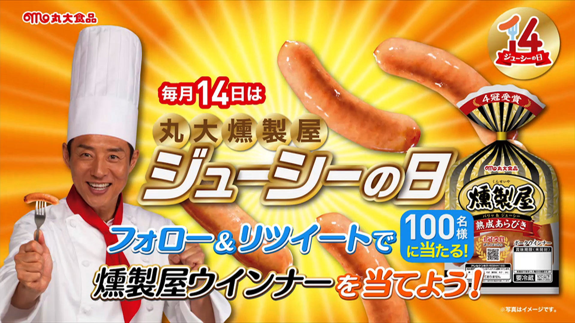 「#ジューシーの日」には燻製屋!丸大燻製屋・ジューシーの日キャンペーン開催。丸大食品が毎月14日を『丸大燻製屋・ジューシーの日』 と制定!