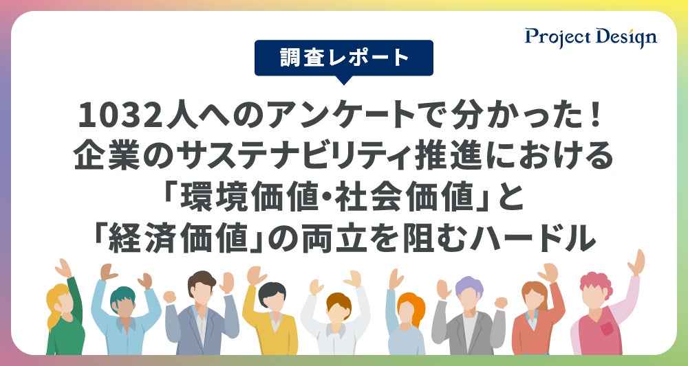 そこで、私たちプロジェクトデザインでは企業のサステナビリティ推進における「環境価値・社会価値」と「経済価値」の両立を阻むハードルを明らかにする目的のもとに「企業のサステナビリティに関するアンケート」調査を実施しました。