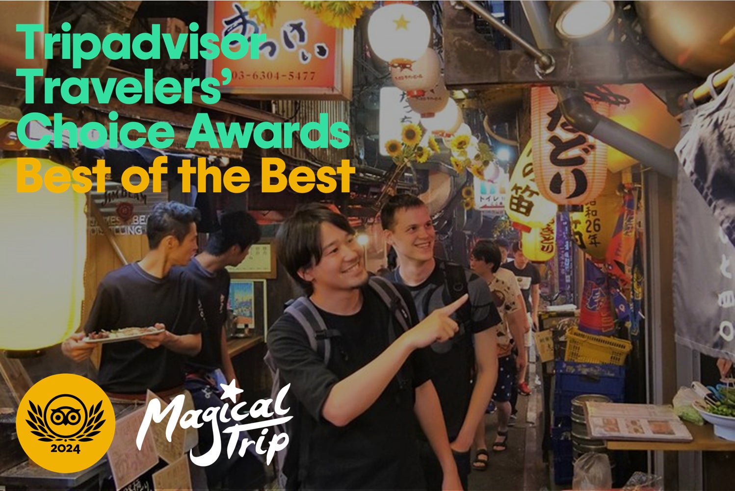 訪日外国人向けローカル体験提供サービス「MagicalTrip」を運営するMagicalTrip株式会社(本社:東京都中央区、代表取締役社長:岩瀬 僚介)は、世界最大の旅行口コミプラットフォームTripAdvisorで、2024年度のトラベラーズチョイス ベスト・オブ・ザ・ベストを受賞し、さらに弊社が提供する「Tokyo Bar Hopping Night Tour in Shinjuku」が日本の体験商品の中で第1位を獲得したことをお知らせ致します。