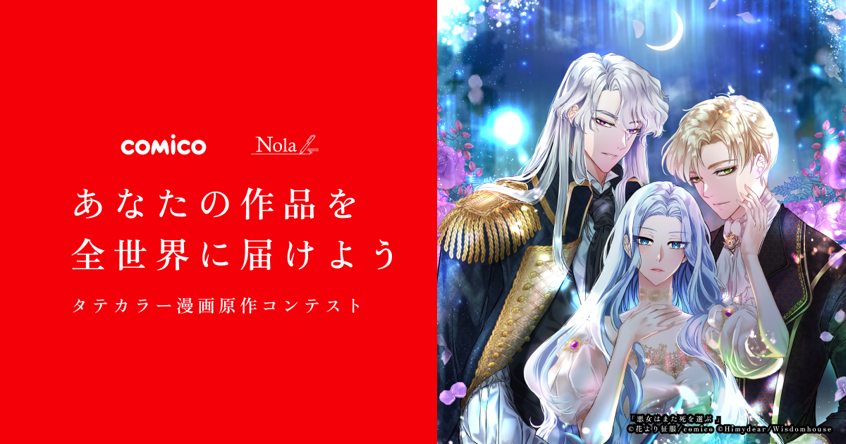 本コンテストは、「comico」と「Nola」が共催する、「全世界で読まれるタテカラー漫画の制作」を目的として、タテカラー漫画の原作となる小説作品を発掘するコンテストです。漫画アプリ「comico」で多くの読者に愛されている「ロマンスファンタジー作品」、「大人の女性向け恋愛作品」のそれぞれのテーマに対して自由に作品を募集する自由形式部門、comicoコミカライズチームによるロマンスファンタジー作品の原案を元に世界観を膨らませて作品を募集するコンペ形式部門の2部門で作品を募集します。