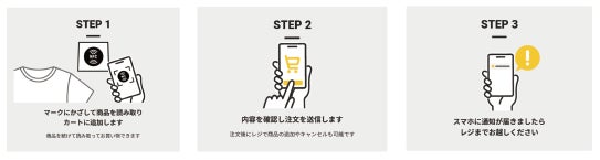 お買い物は、モバイルオーダーシステムのL.B.B.Cloud(株式会社LBB)を採用し、専用のスマホ端末を使用してお客様自身で商品のICタグ(NFC)を読み取り注文を行います。