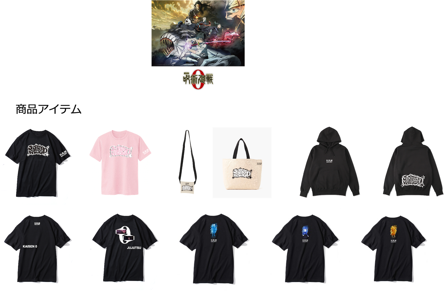 『劇場版 呪術廻戦 0』 とのコラボではSupremeのヘッドグラフィックデザイナーとしても活躍中のピーター・パッキン氏や、GIVENCHYのエンブレムデザインやGUとのカプセルコレクションで大きな話題を呼んだ渋谷忠臣氏とコラボレーションした商品を販売。