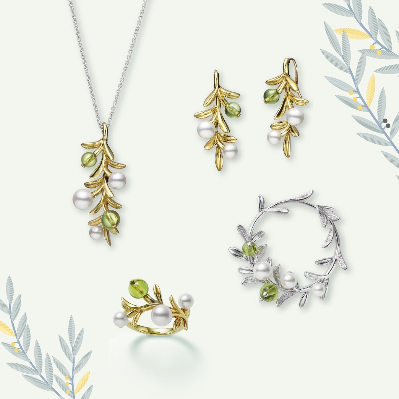 その瑞々しさをアコヤ真珠とペリドットで表現。