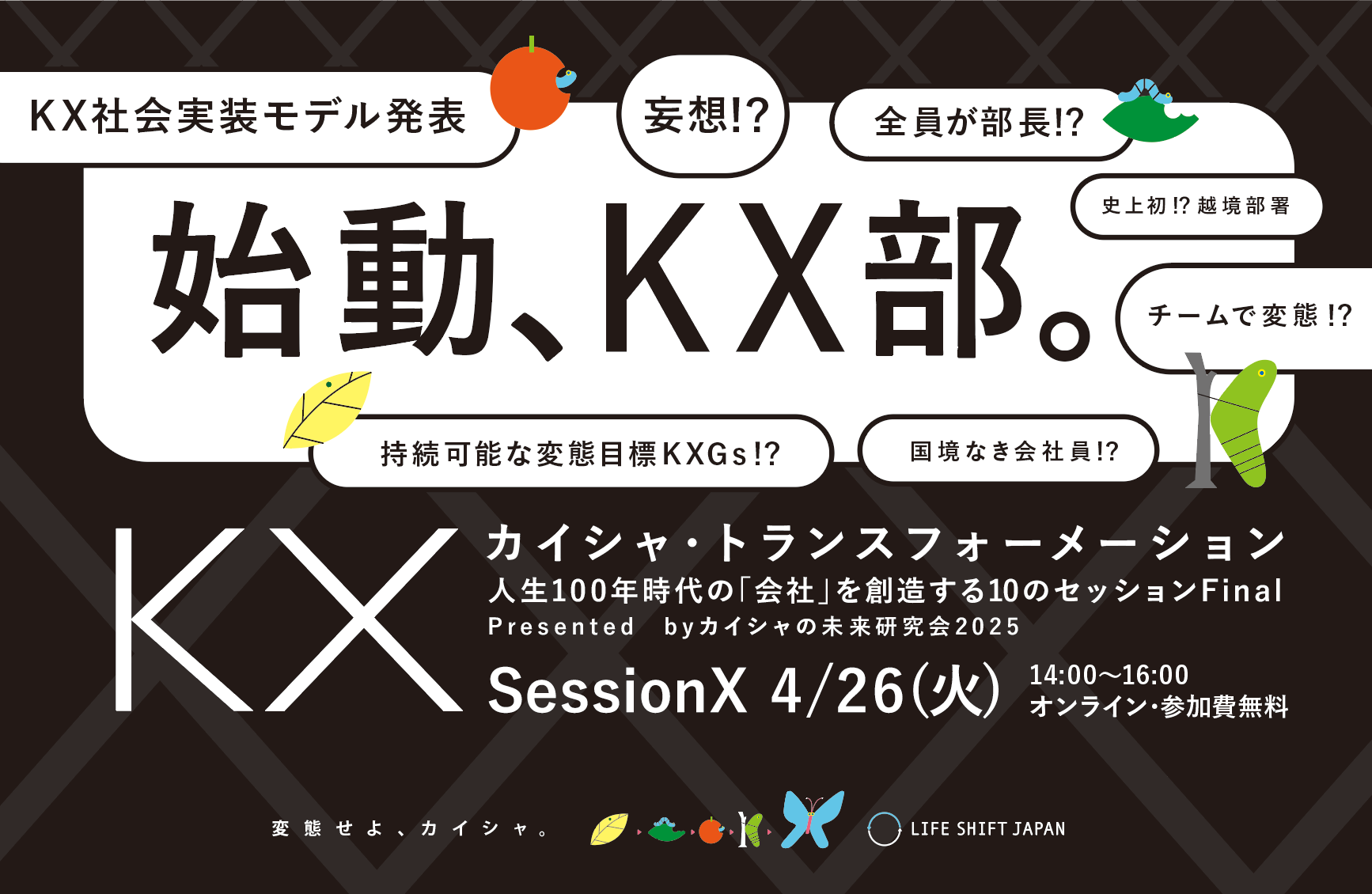 【オンラインセミナー】KXカイシャ・トランスフォーメーション~人生100年時代の‟会社”を創造する10のセッションFinal『始動、KX部。』~4/26開催(ライフシフト・ジャパン)