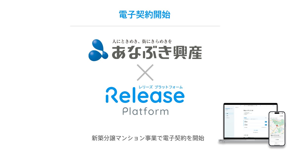 穴吹興産株式会社(本社:香川県高松市鍛冶屋町7番地12、代表取締役 穴吹忠嗣、以下当社)は、新築分譲マンション事業において、不動産売買契約時の必要書類、契約書類の署名・捺印等の手続きを電子化する不動産売買支援ハブ「Release Platform(レリーズプラットフォーム)」を、4月下旬より販売物件に順次導入し、電子契約での取引を開始しましたのでお知らせいたします。