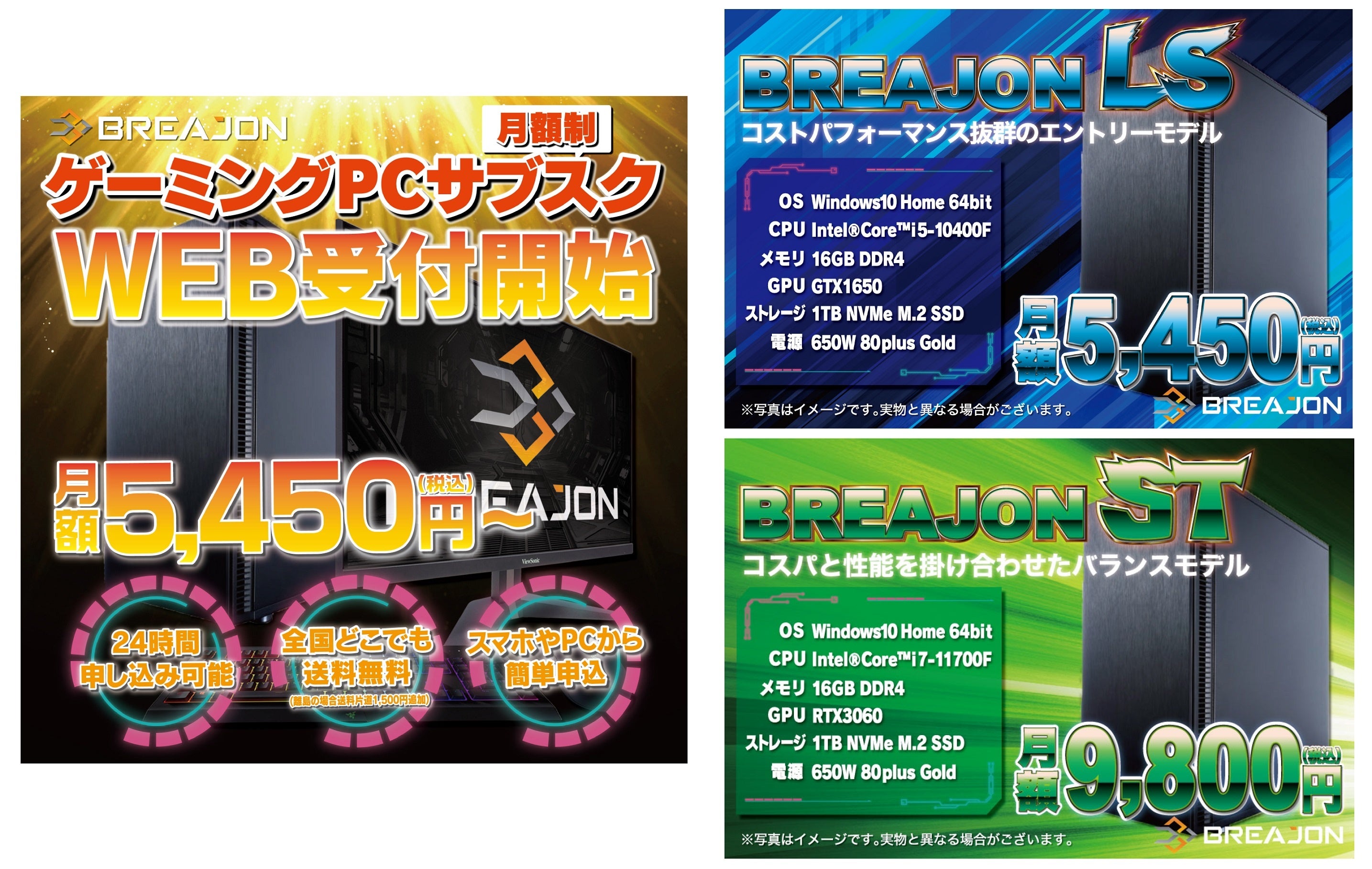 ・BREAJONゲーミングPCサブスクリプションサービスのオンライン受付開始