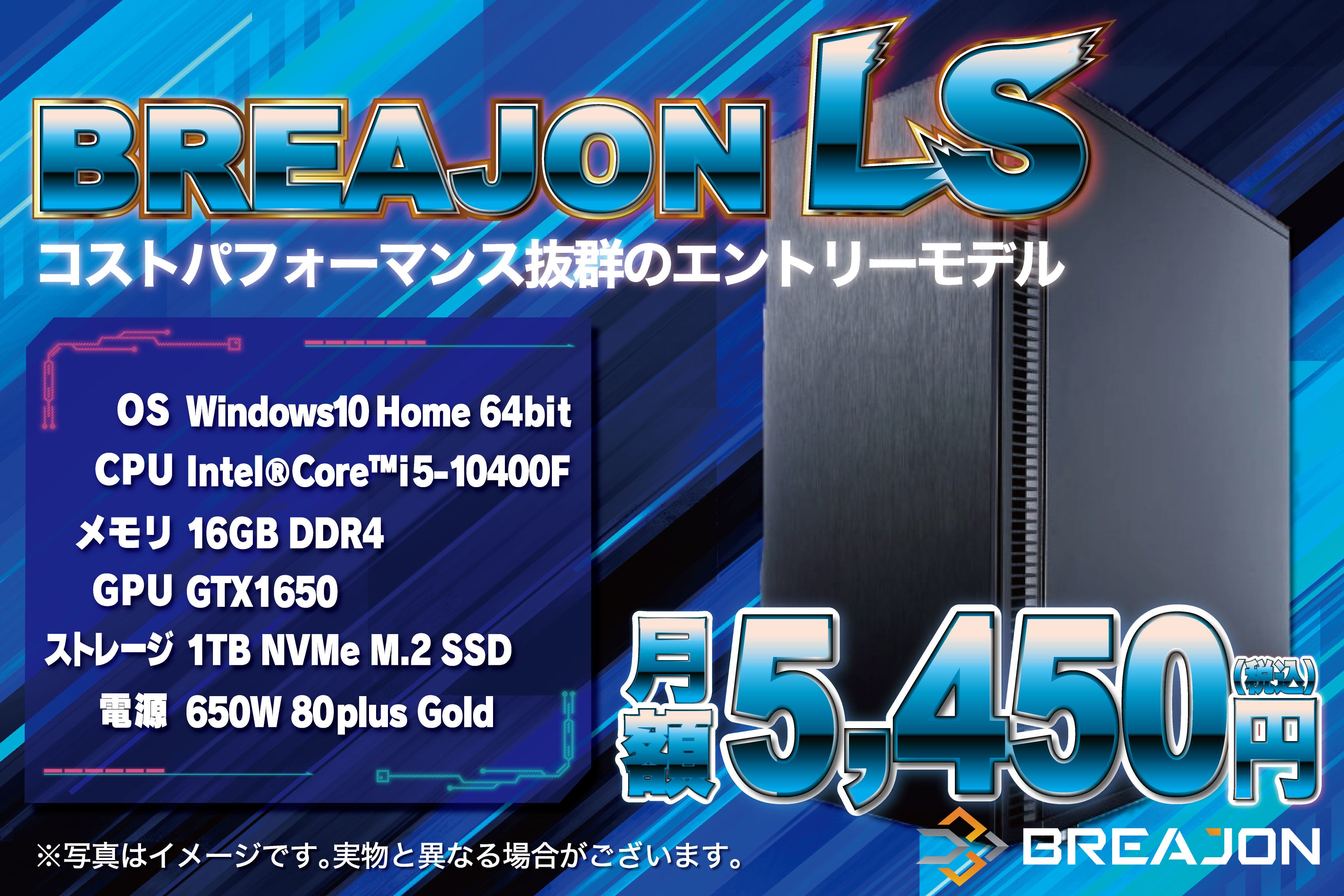 たった5分で自宅から簡単お申込み!完全月額課金制ゲーミングPCサブスクリプションサービス「BREAJON」がなんと驚きの5,450円から!オンライン受付開始!