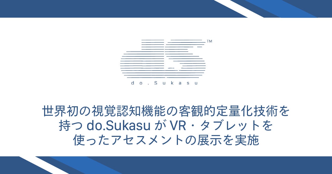 株式会社do.Sukasu(本社:奈良県、代表:笠井一希、以下「do.Sukasu(ドスカス)」)は、加齢などによって視覚認知能力※1が下がることにより、自動車運転事故や労災のリスクなどがあがることに着目し、視覚認知能力の評価とトレーニングができるVRやタブレットのコンテンツを開発するなど、企業との実証実験に取り組んでいます。。この「人間の視覚認知能力を測定し、定量化する技術」は世界初※2であり、この度、複数の会場で展示会を行いましたのでご報告いたします。