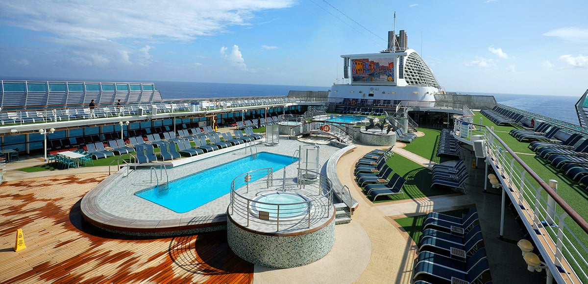 パブリックスペースはゆとりと開放感にあふれ、船内生活の中でいつでも海を近くに感じることができます。2つのプールと3つのジャグジーを備えたプールデッキや、広々としたショーラウンジなど、各所でリラックスしたひとときをお過ごしください。