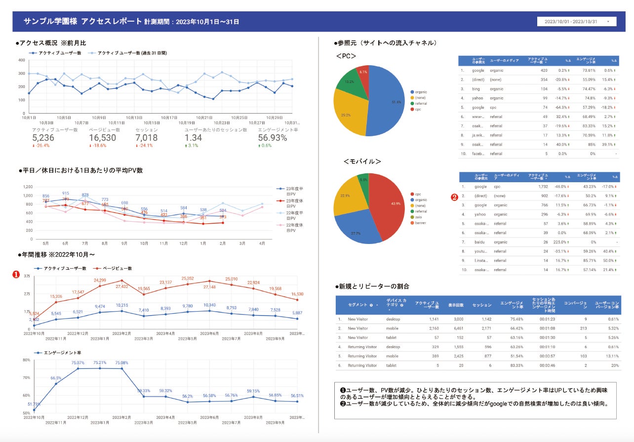 展示会後のサイトへの流入の変化、流入後の行動を可視化することで、どのコンテンツに効果があったのかを検証、改善に繋げられます。