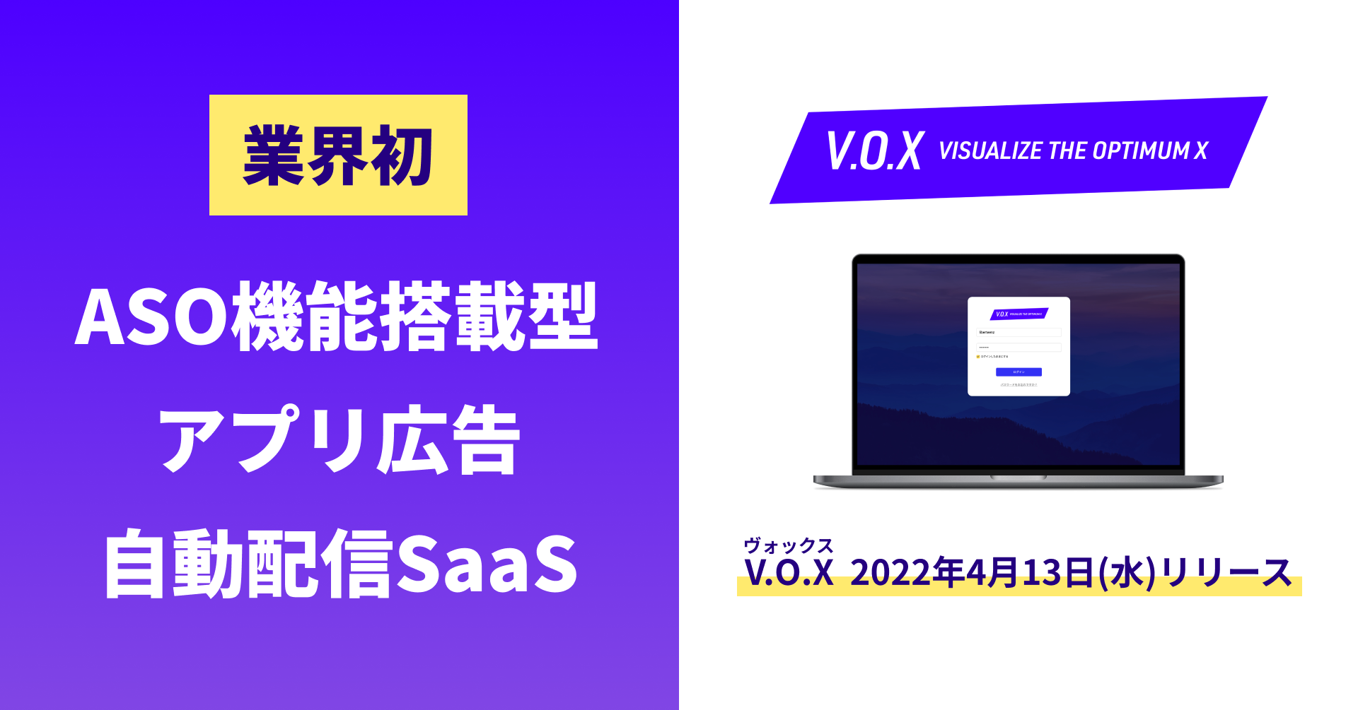 リバティーンズ株式会社(本社:東京都港区、代表取締役:山口雄大)は、業界初ASO機能搭載型の広告自動配信SaaS「Visualize the Optimum X(以下V.O.X)」の提供を2022年4月13日より開始します。