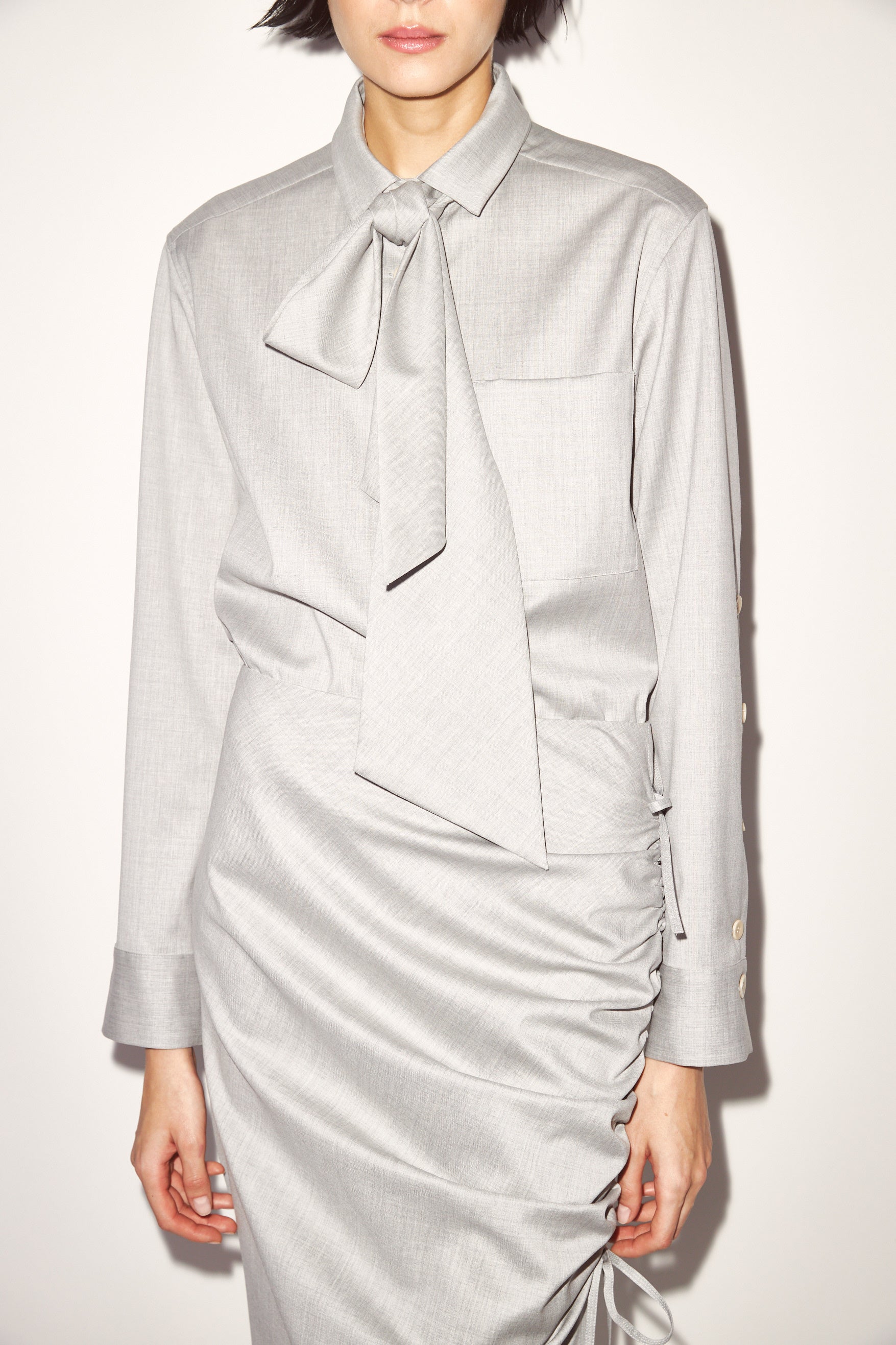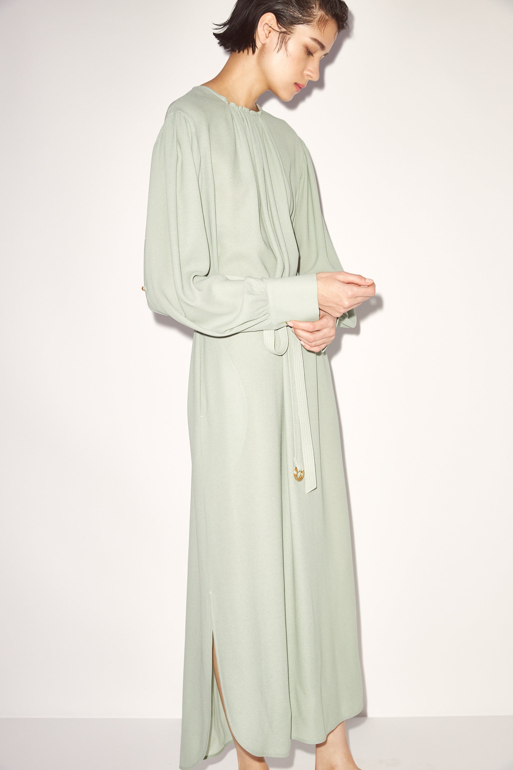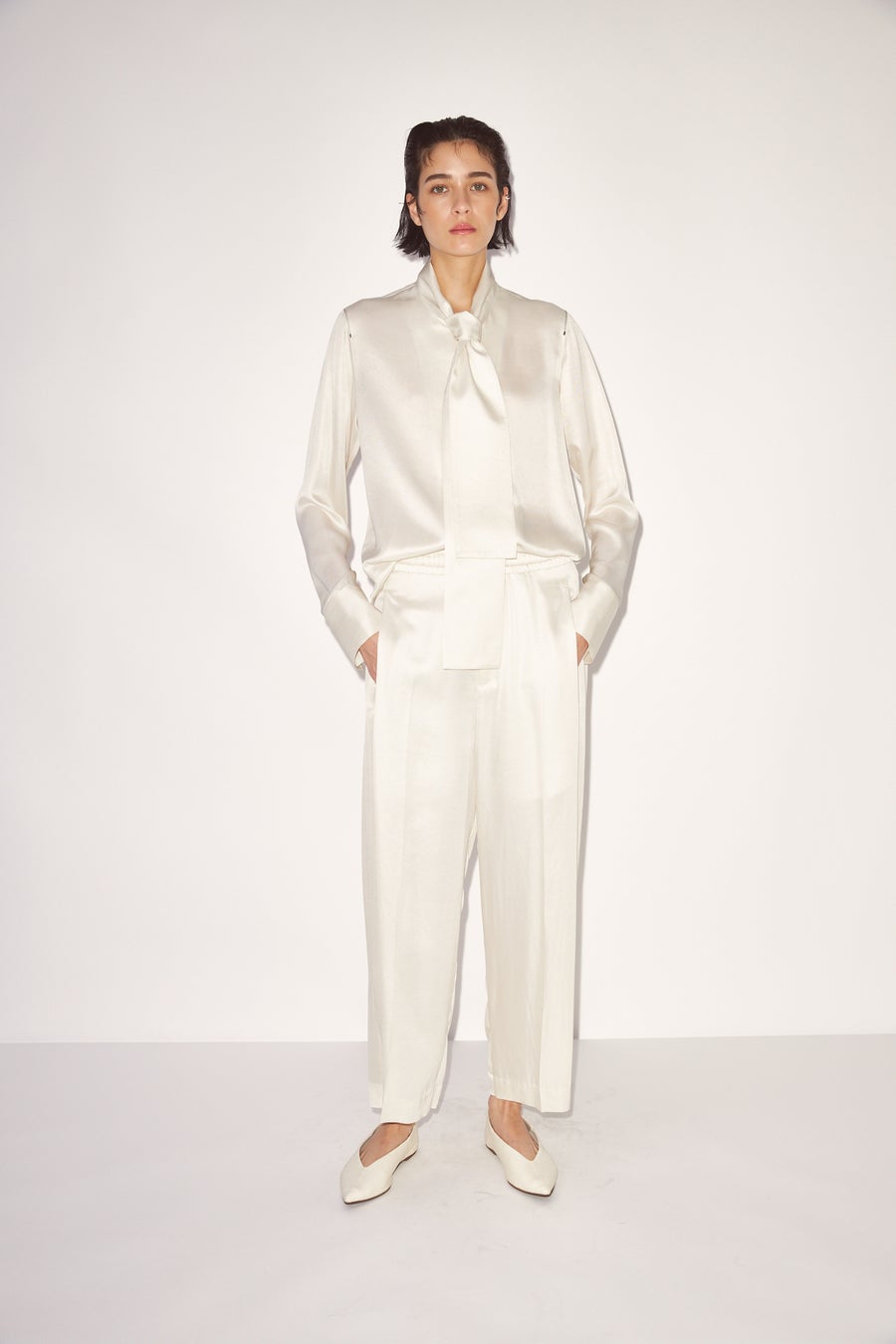 これらの美しさを最大限に現したバイヤスカットやドレープ、細部にわたる縫製技法や、高度なパターン技術が問われる優れたデザイン設計で、究極の持続可能なミニマリズムスタイルがマスキュリン×フェミニンなエッセンスで表現されています。