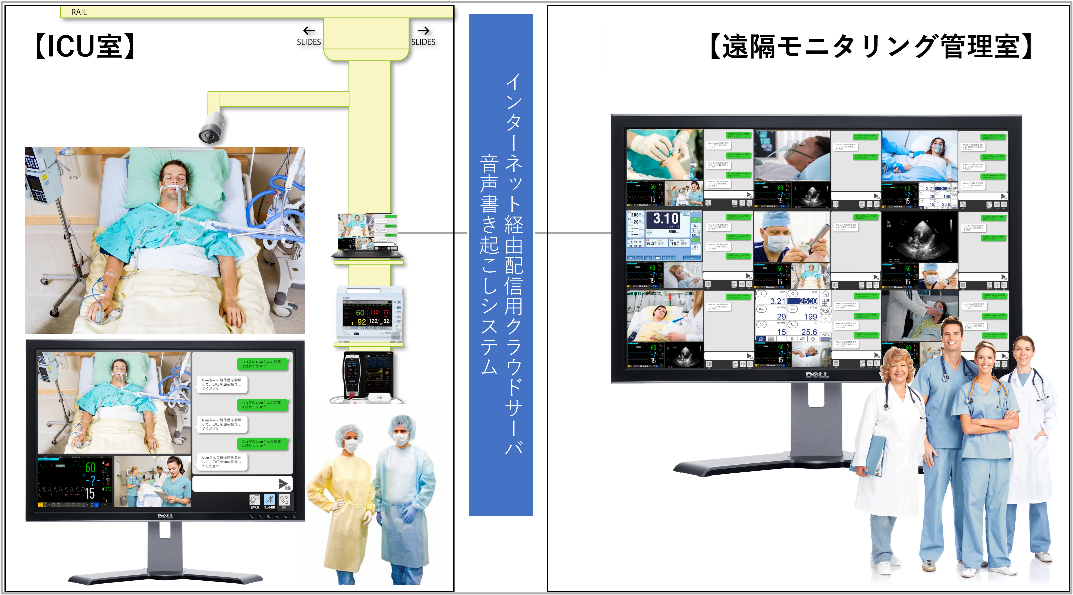 ICUと遠隔管理室をリアルタイムでむすび会話内容を自動で書き起こし字幕化