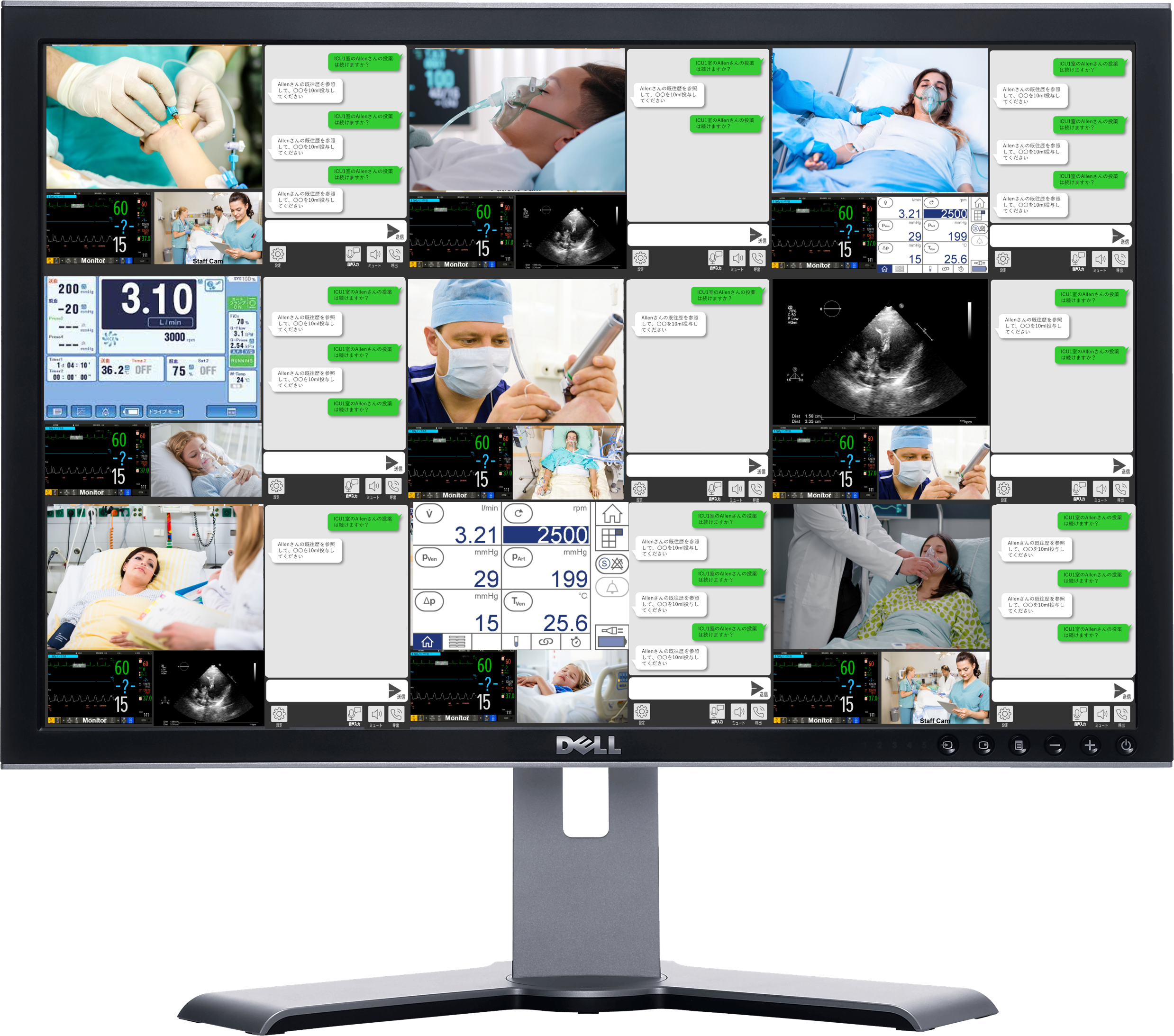ICU9室分を遠隔管理室で一括管理、一目でわかるリアルタイム状況