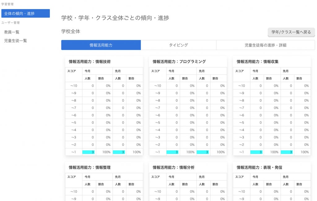 システム内通常画面『地域全体』『学校別』『学年別』
