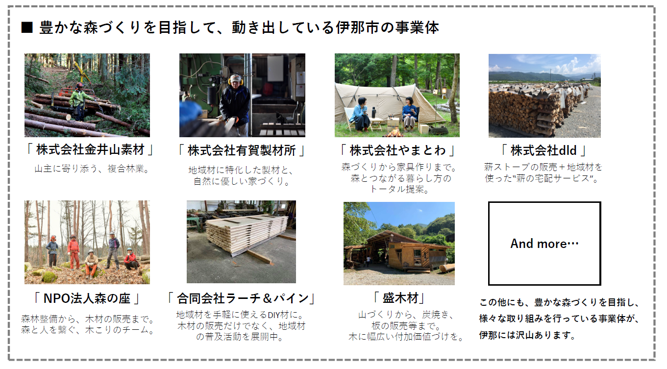 中央アルプスと南アルプスに挟まれ、雄大な自然が広がっている信州伊那谷。その中心に位置する伊那市は、市の約80%を森林が占める森林都市です。伊那市は、この豊かな森林を活かして、多面的な価値を享受できる社会をつくっていこうと、平成28年に「50年の森林(もり)ビジョン」という目標を掲げ、「ソーシャルフォレストリー都市」を宣言しました。(https://www.rinya.maff.go.jp/j/riyou/kidukai/attach/pdf/mokuiku-17.pdf)