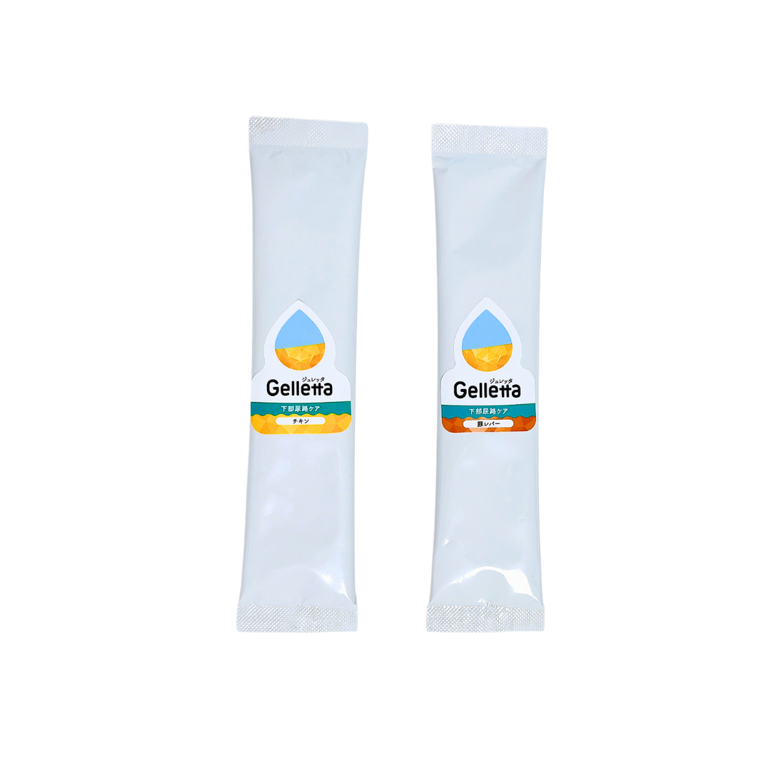 「Gelletta」は、犬猫の水分補給に特化した“食べるお水”。水分不足が原因で発症するリスクの高い下部尿路疾患などの予防を主な目的とした新しい食習慣として、2020年に発売されました。お湯に溶かして冷やすだけで簡単に作れることから「愛犬・愛猫のために手軽に始める健康習慣の一つ」として、特に尿石症や膀胱炎などの症状が再発しやすい犬猫オーナーさまに喜ばれてきました。