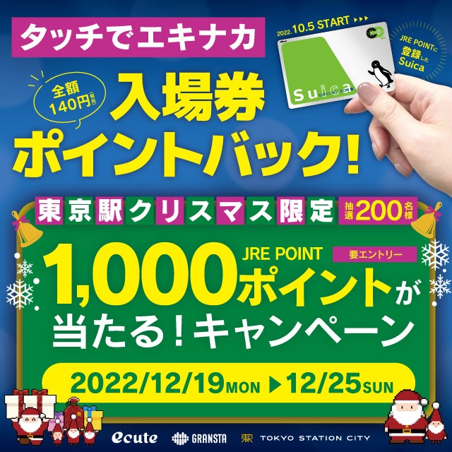「東京駅クリスマス限定!200名様に1,000ポイントが当たる!&タッチでエキナカ入場券ポイントバック」