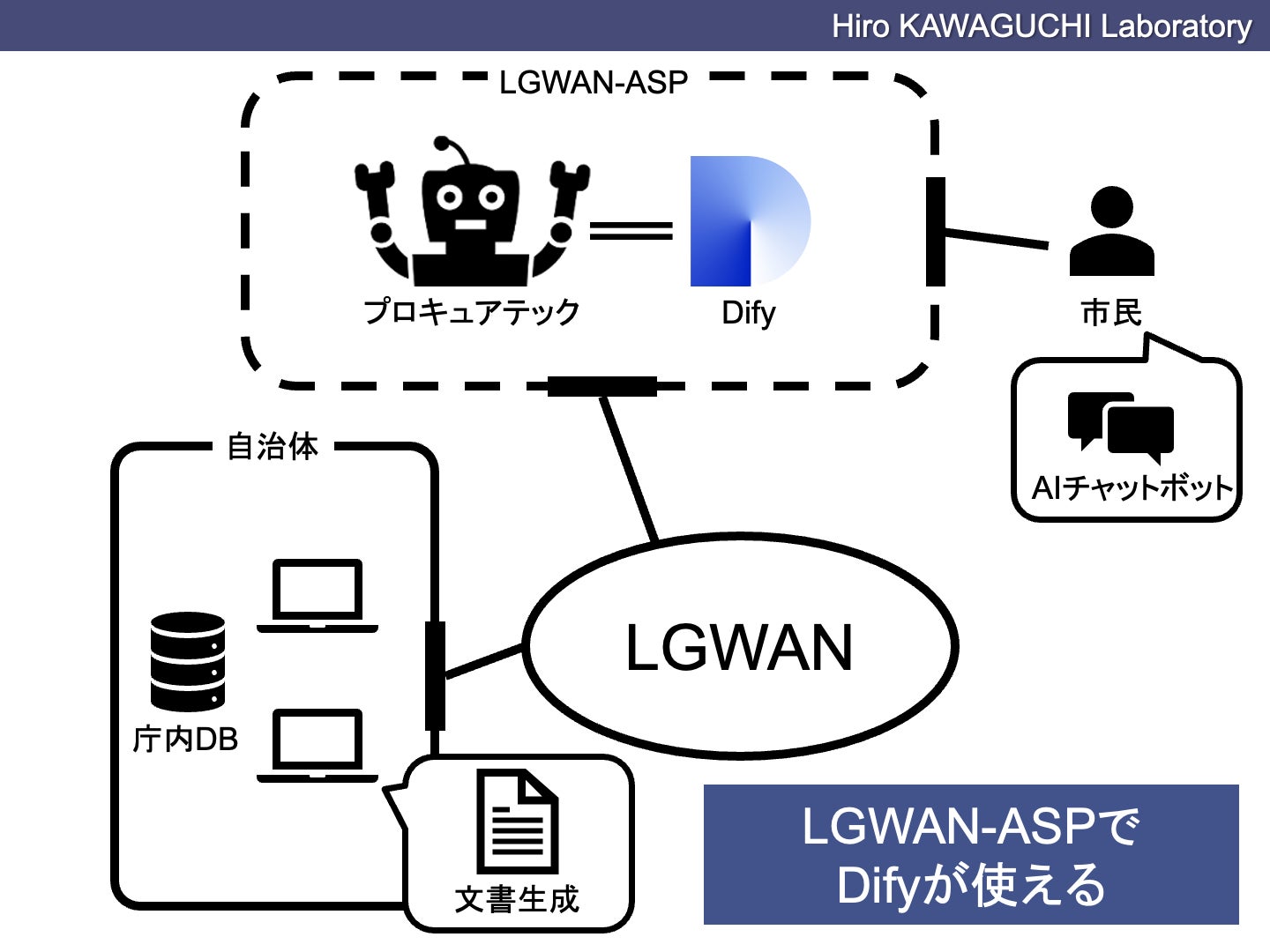 このたび、川口弘行合同会社(所在地:東京都大田区、代表:川口弘行)は、同社が提供する調達支援AIサービス「プロキュアテック」がLGWAN-ASPに対応したことに加え、同サービスの中核を担う生成AI管理基盤を使った生成AI利活用支援事業を「プロキュアテック バックエンドAI」としてLGWAN-ASP上で提供開始いたします。