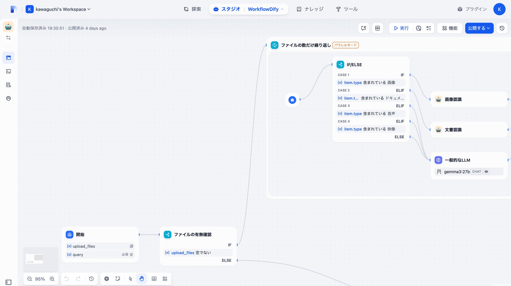Difyは、ChatGPTやGoogle Gemini等、さまざまなAIモデルに対応しており、RAG(検索拡張生成)エンジンを搭載しています。これにより、外部データソースから関連情報を検索し、AIの応答に組み込むことが可能です。また、外部ツールやAPIとの連携も容易であり、幅広い業務効率化や自動化に貢献します。