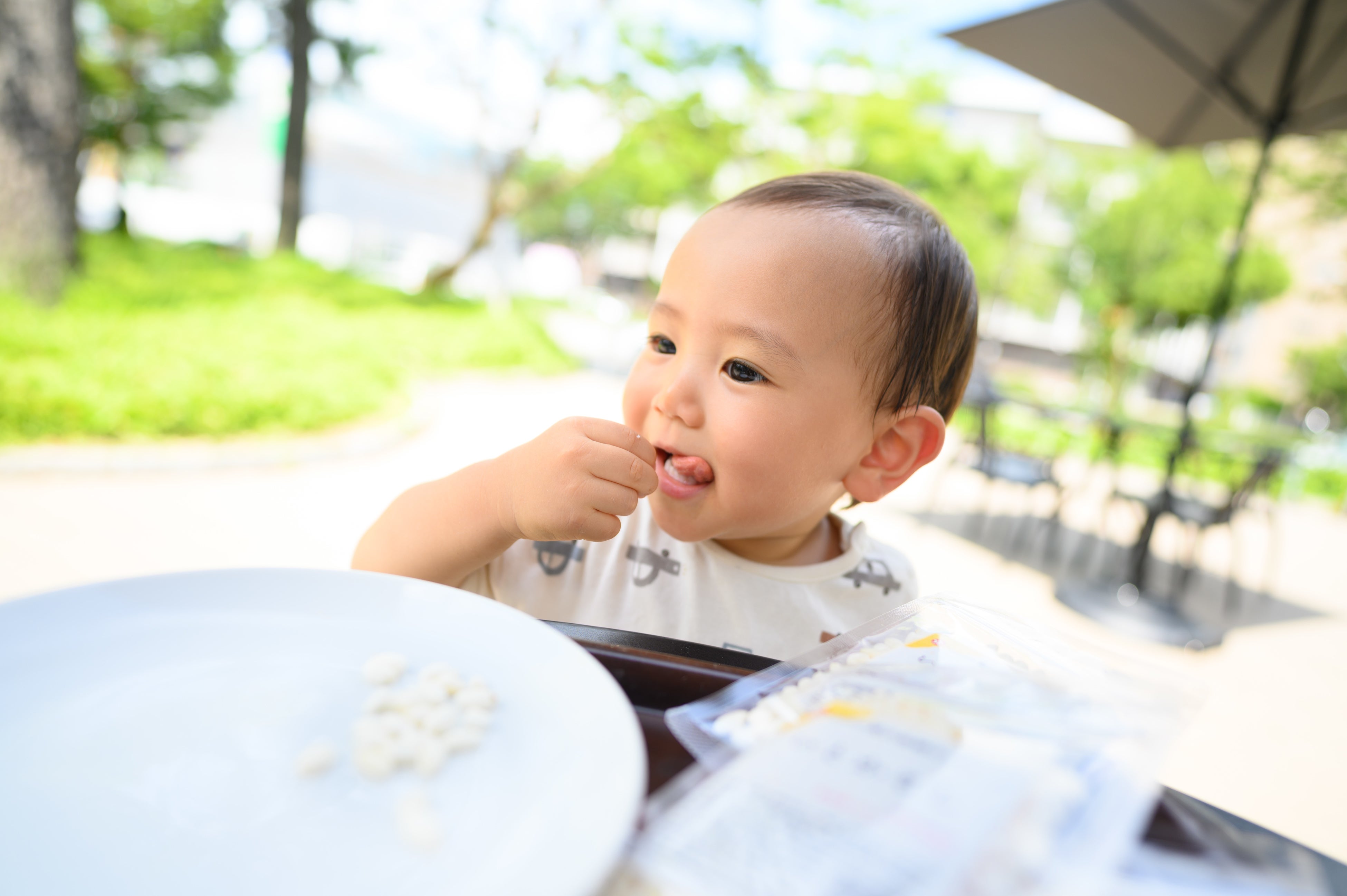 赤ちゃんを連れての移動やお出かけに最適なおやつ。音や匂いも少なく、1粒づつ、ゆっくり時間をかけて食べられます。お米本来の優しい甘さのお米スナックです。