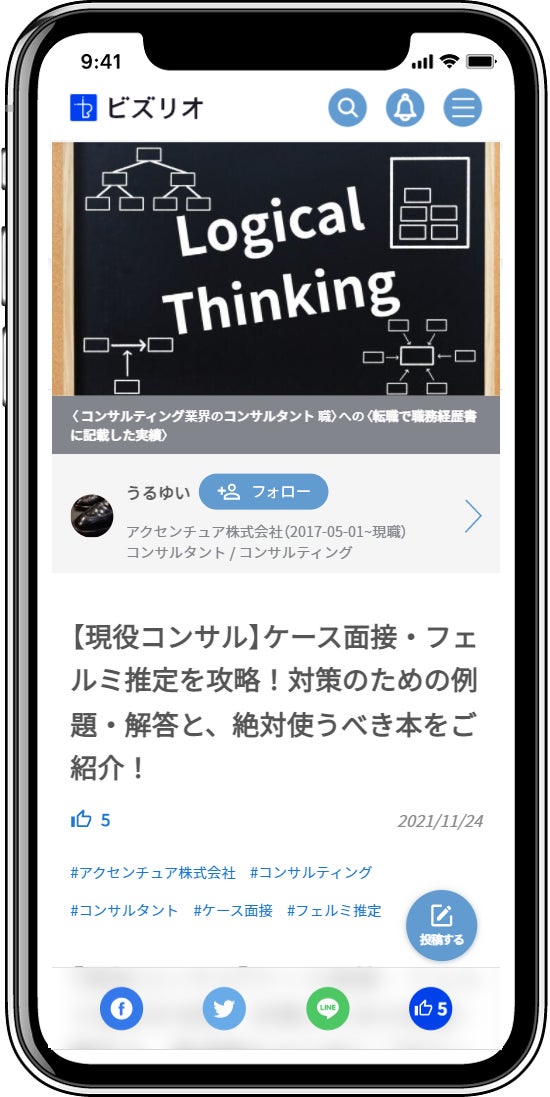 「ビズリオ」は、自分が経験した唯一無二のキャリア経験談・ノウハウを気軽に投稿し、キャリアや転職のヒントが欲しい人に共有するサービスです。