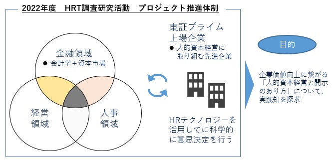 HRTは2020年3月より、日本初のISO 30414調査研究をはじめとして“人的資本の開示”の国内外の最新動向について継続的に調査研究活動を行ってきました。2022年度はこれまでの経営・人事領域に加え、「会計学」専門の学術研究者、「企業投資/資本市場」の有識者を調査研究メンバーに迎え、 より規模を拡大して実施いたします。特に今回の調査では、人的資本経営と開示に取り組む先進企業の協力のもと、HRテクノロジー活用を通じた人的資本経営を本気で実践する企業の取組みについて、産学連携による科学的なアプローチで分析し、企業価値の向上との関係性、実践知を探求する点に特色があります。