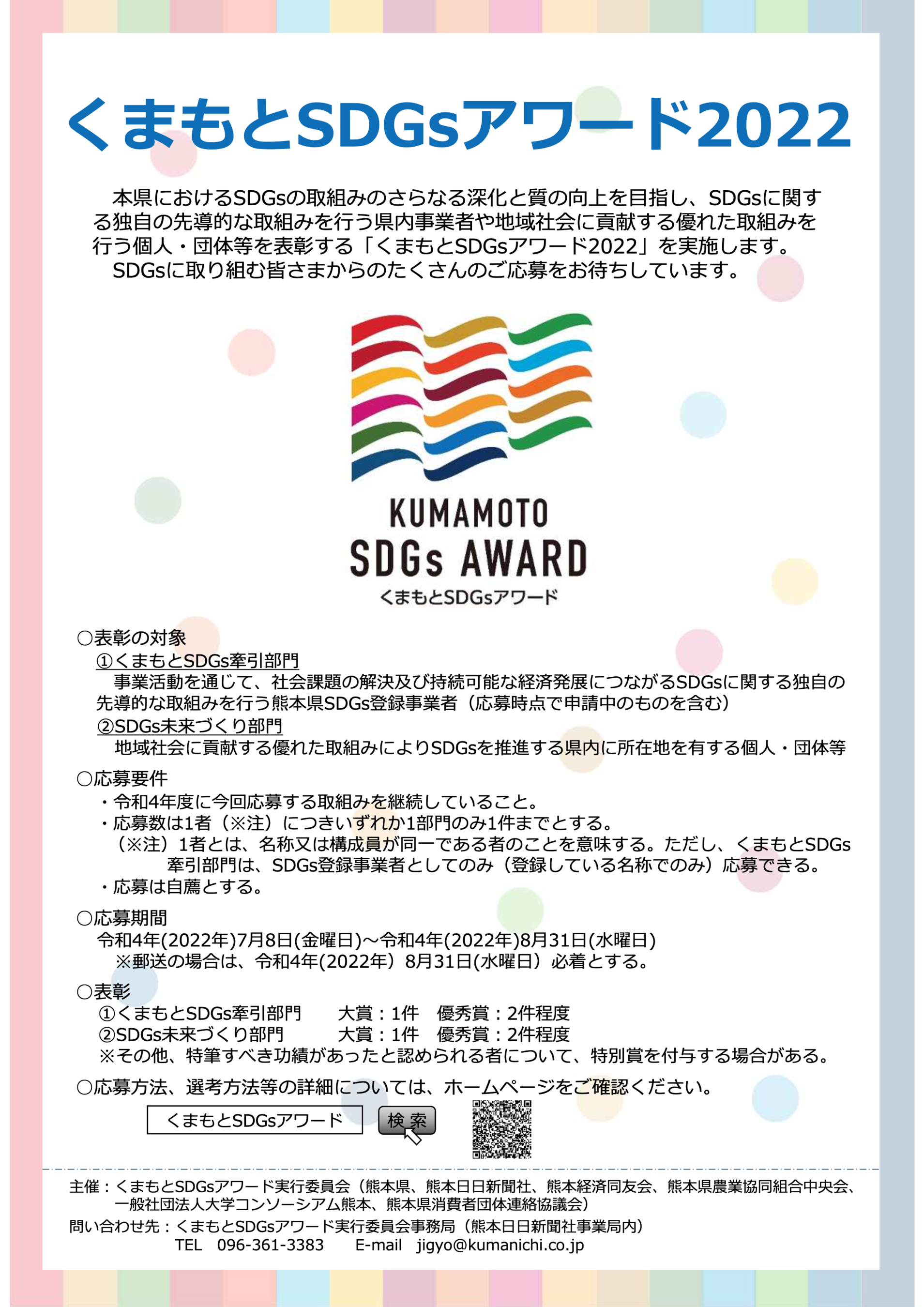 くまもとSDGsアワード2022「くまもとSDGs牽引部門:優秀賞」選出