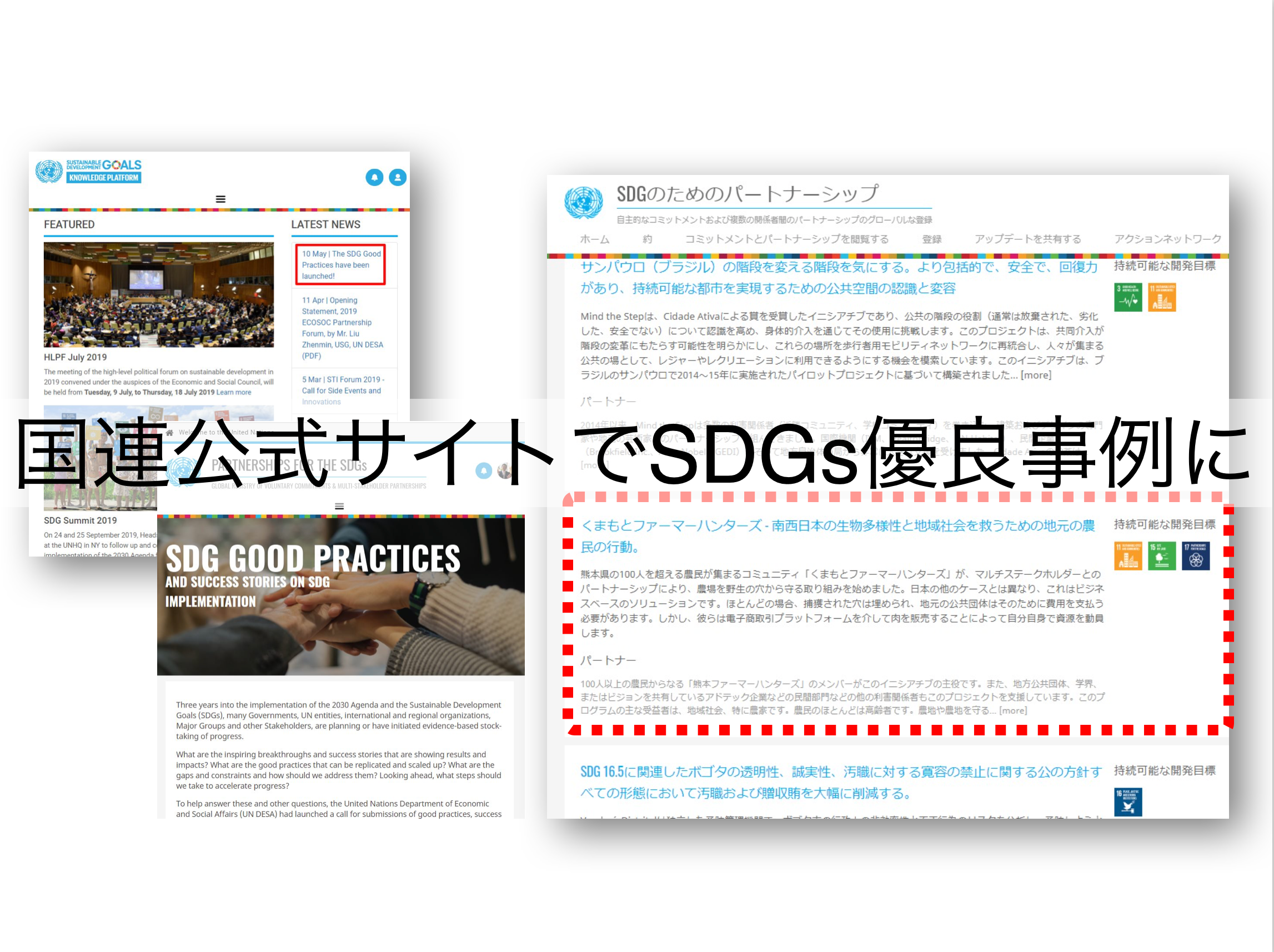 農家ハンターの活動は、TV情熱大陸で、そして国連でSDGs優良事例として「生物多様性と地域コミュニティーを守る活動」と紹介されました。