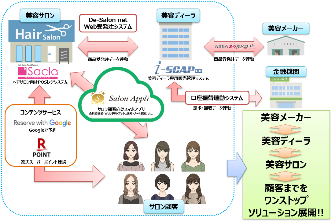 POSシステムとスマホアプリ、コンテンツサービスを併用して利用することで、サロン顧客の新規獲得やリピート集客につなげることができます。営業活動の変革とお客様のニーズを捉えた最適な商品・サービスを提供することで、当社と理美容業界のDX化を普及・推進させることを目指します。