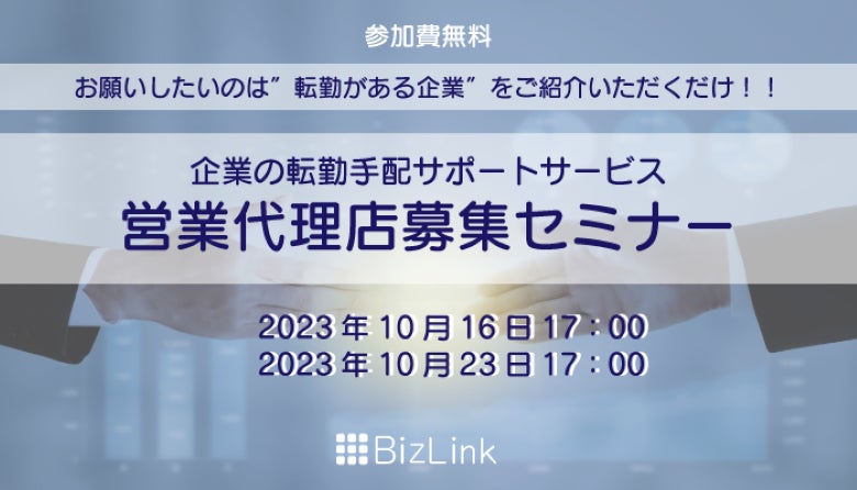 代理店募集の無料オンラインセミナー「株式会社ビズリンク:転勤手配サポートサービスの紹介代理店募集セミナー」を開催します!