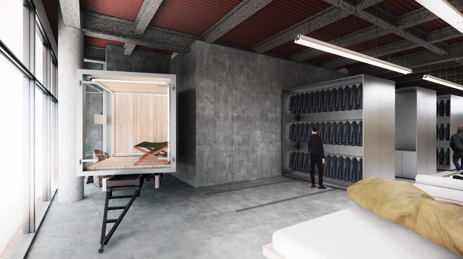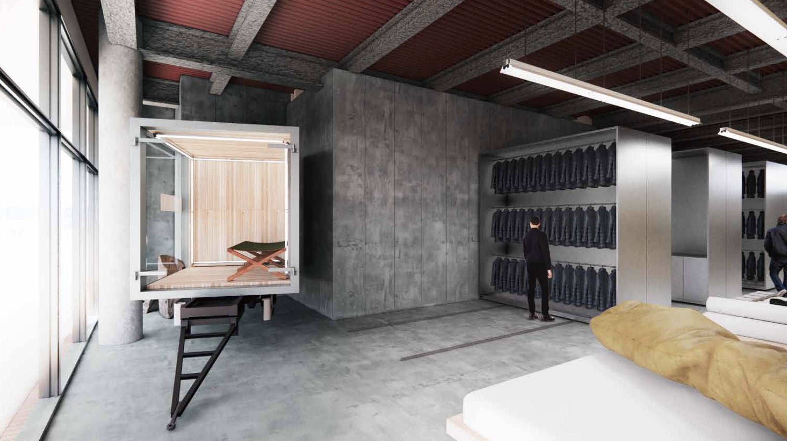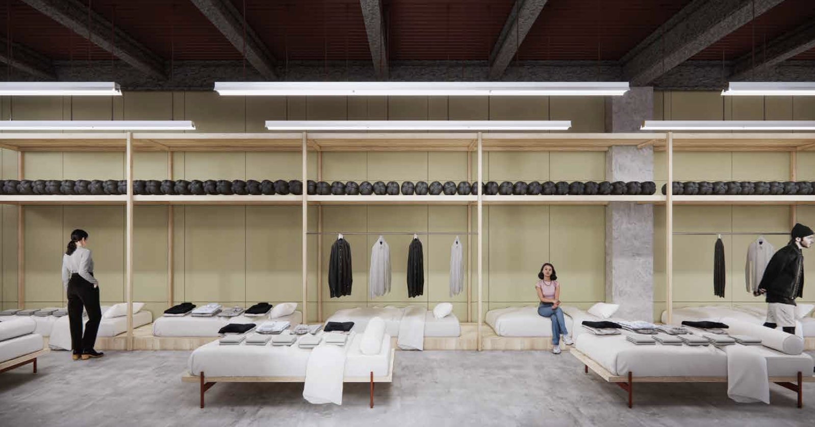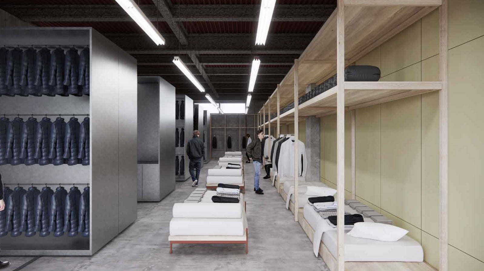 「 NANGA SHOP HARAJUKU 」と名付けられた旗艦店では、自社工場のファクトリー感漂うインテリアに、ダウンの暖かさを実感できる巨大な"冷凍庫"も常設。