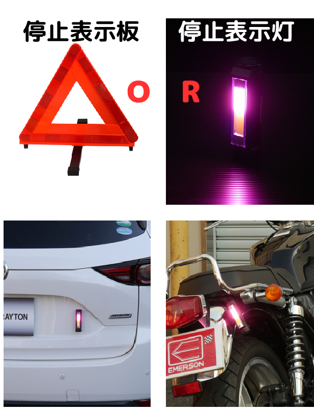 もちろん停止表示器材として、道路交通法施行規則に適合しています。
