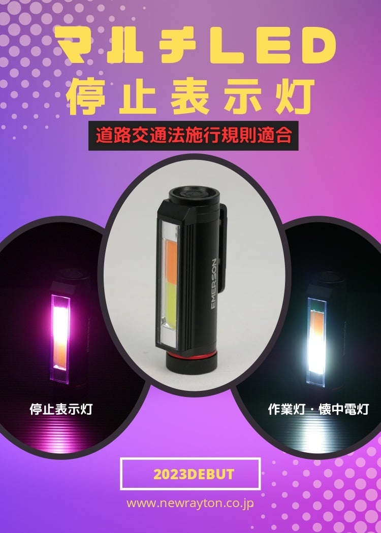 自動車・自転車用品を製造・販売するニューレイトン株式会社(本社:東京都江戸川区、代表取締役社長:野木崇宏)は、自動車用品ブランド「EMERSON(エマーソン)」から停止表示器材の新製品EM-369を、2023年6月上旬より販売開始致します。発売に先がけ一部ECサイトにて先行予約を受け付け致します。