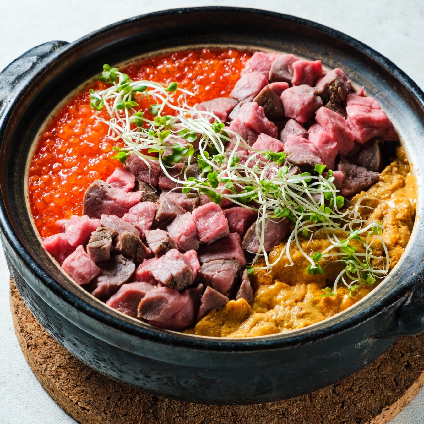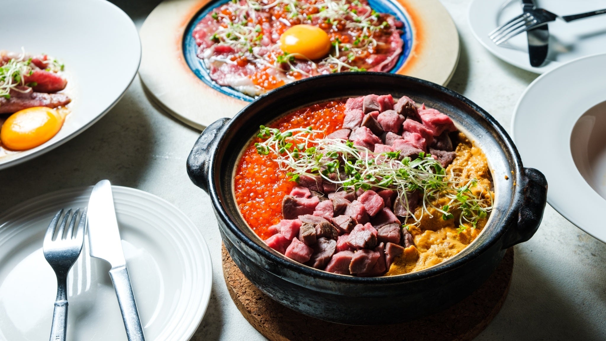 ワインと合わせることを考えてたどり着いたシンプルながら味わい深い一品になりました。半熟卵を崩してよく混ぜてお召し上がりください。