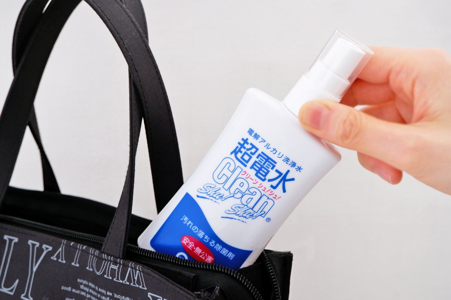 今回発売を開始する「超電水クリーンシュ!シュ! コンパクトボトル」は、テレビ放送や雑誌等でも取り上げられており、幅広い世代の皆様にご愛用いただいている除菌洗浄剤「超電水クリーンシュ!シュ!」をお客様よりご要望の多かったメール便対応のボトルでサイズ展開。