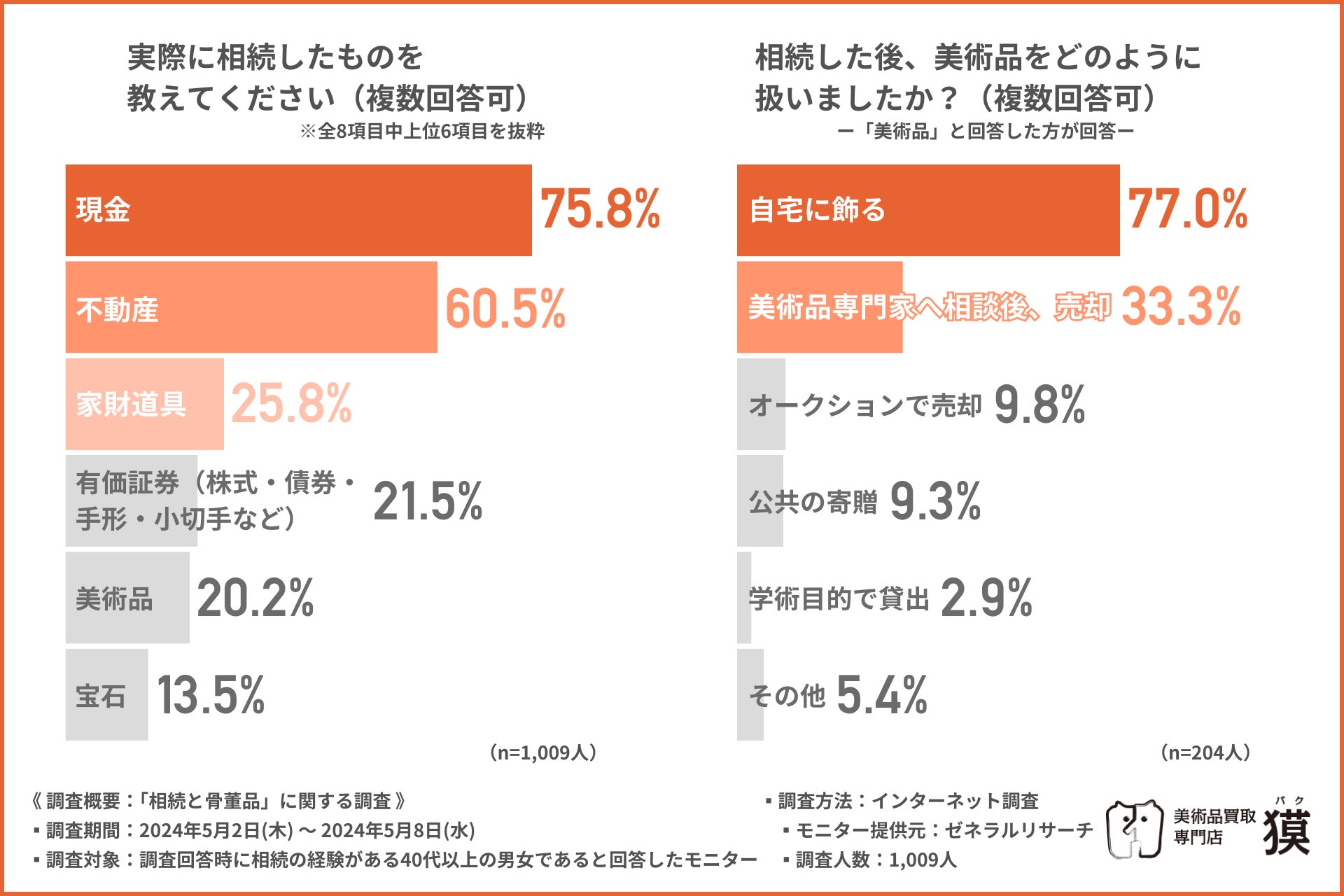 不動産や現金は想像するものとして一般的ですが、一方で約2割の方が「美術品」を相続したと回答しました。