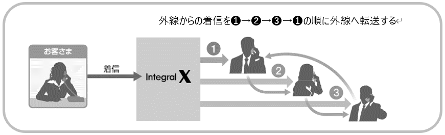 テレワークに対応した電話応対の利便性を向上しました。従来の転送電話機能では、特定の人だけに電話が転送されるため、電話応対の負荷が集中していましたが、外線着信の転送電話機能の向上により、テレワークでオフィスに人がいない場合でも、転送先を順次切り替えて電話応対者の負荷分散を実現し、本来の業務に充てる時間が確保されることで業務効率の向上が図れます。