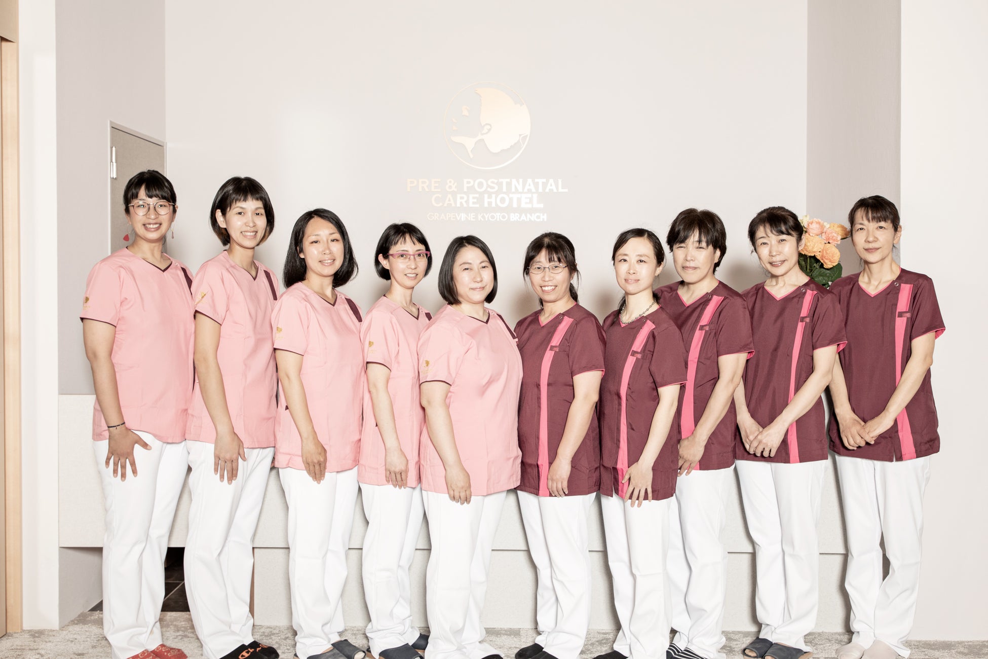 また、女性の一生のうちで妊娠中や出産後は、最も鬱病を起こしやすい時期。妊娠・出産・子育てを家庭のみに任せず支援し、孤立を防ぐことが重要だと、厚生労働省も産前・産後サポート事業に取り組んでいます。このような背景を受け、産前産後女性をケアするスペシャリストが集まり、開業へと至ったのが、「産前産後ケアホテル ぶどうの木 京都院」です。